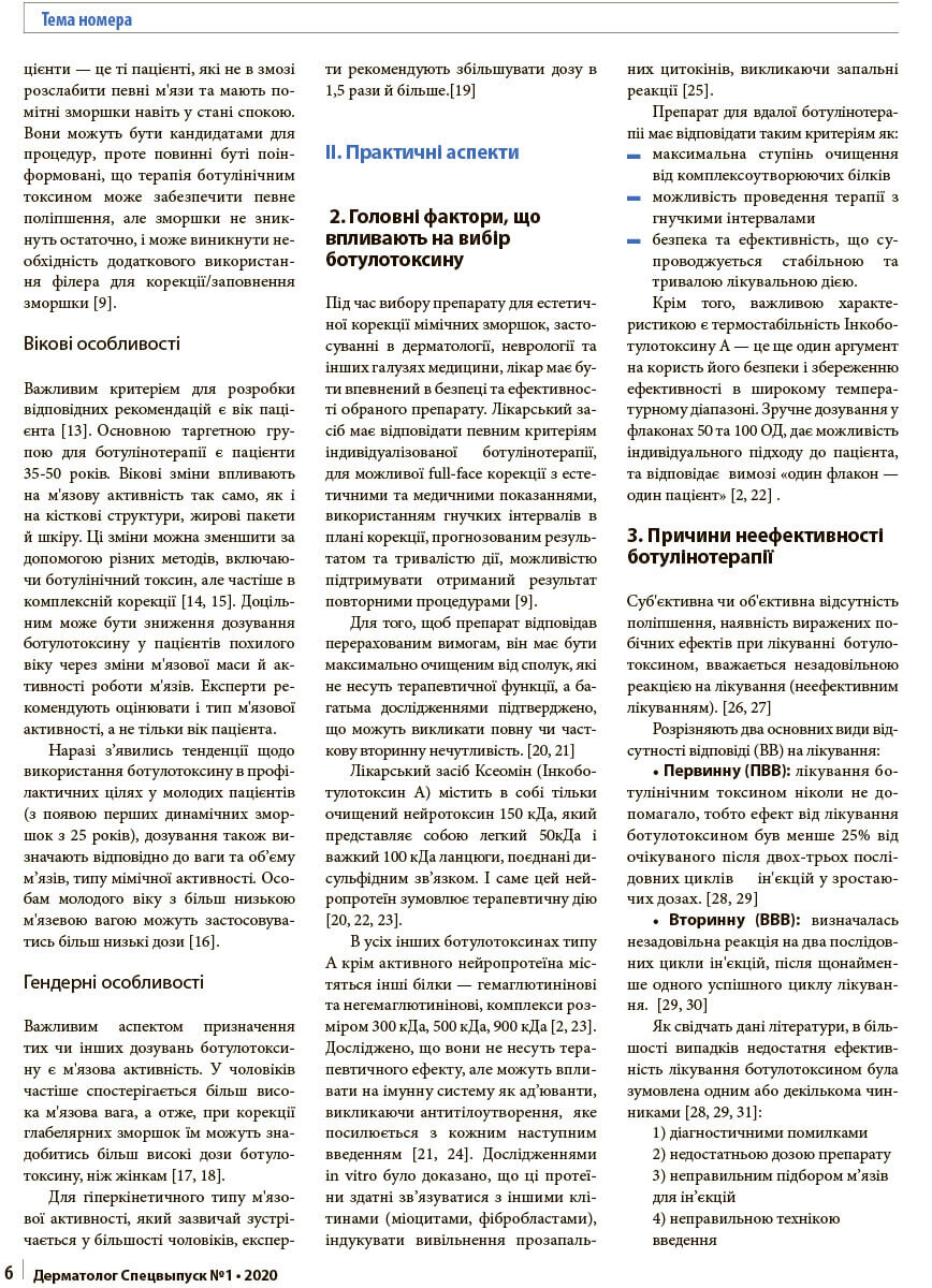 В августе 2020 года национальная группа экспертов в сфере дерматологии и косметологии объединились для создания Украинского Консенсуса Консенсус по применению Инкоботулотоксина А в эстетической медицине. В документе представлены рекомендации для эффективного и безопасного использования инкоботулотоксина, анатомические ориентиры при on-label и off-label назначениях, учитывая тип мимической активности, возраст и пол пациента.