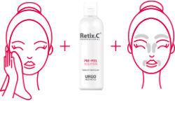 Шаг 1: Pre-peel Solution + Ultra Repair MoisturizerОчистите и подготовьте кожу к процедуре с помощью Предпилингового раствора. Защитите чувствительные участки, такие как зона волосков бровей, уголки глаз и складки крыльев носа, используя Ультраувлажняющий и восстанавливающий крем. Нанесите его легкими движениями, избегая попадания в глаза и на слизистые оболочки.