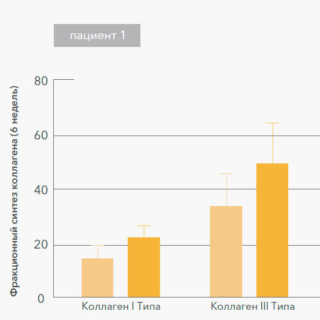 Синтез коллагена I Типа увеличился в среднем на 26%