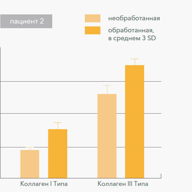 Синтез коллагена III Типа увеличился в среднем на 60%