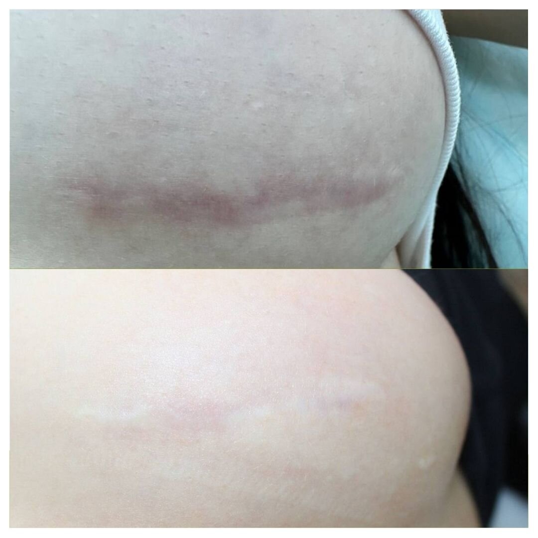 На прикладі своїх пацієнтів можу розказати про один випадок. Пацієнтка (27 років) з червоними рубцями після мамопластики.