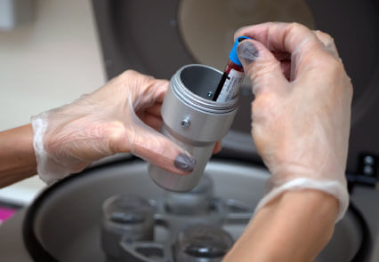 Спеціально розроблене відділом досліджень, розробок та інновацій Інституту біотехнології (BTI) обладнання для центрифугування з метою отримання плазми, збагаченої факторами росту Endoret PRGF, для подальшого введення.