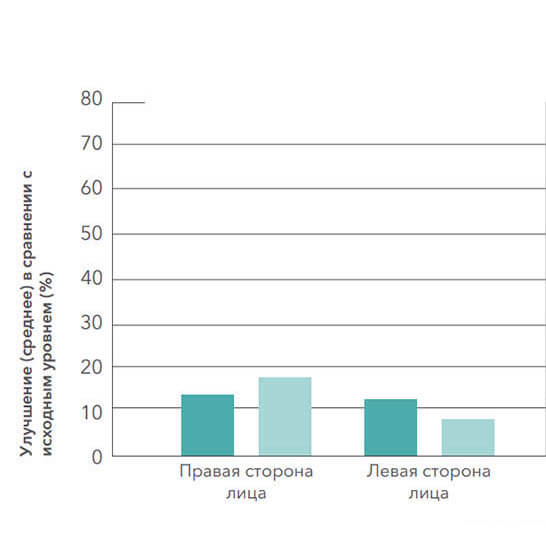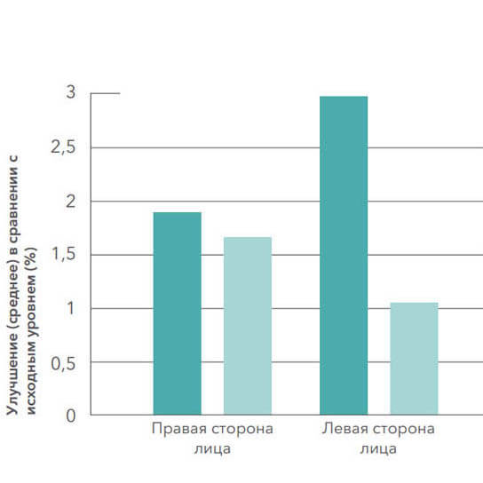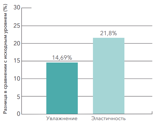 Зволоження шкіри збільшується на 14,69%, а еластичність на 21,80%